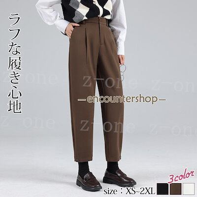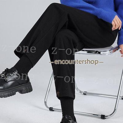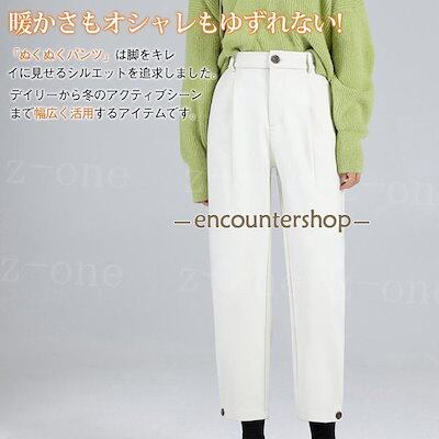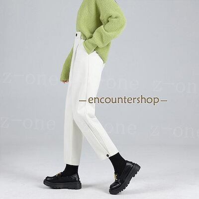 テーパードパンツ レディース 新作 秋冬 ハイウエスト 九分丈 ラシャ 体型カバー 着痩せ ゆったり 裏起毛 おしゃれ 可愛い 大人 OL 美脚 脚長