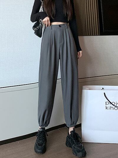 3色 大きいサイズ S-4XL ロング丈 パンツ ズボン レディース 百掛け 春秋 ファッション ハイウエスト ウエストゴム 裾ゴム カジュアル スラックス 気質 無地 快適