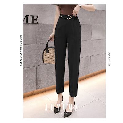 スラックスパンツ レディース 九分丈 通勤 黒スラックス ストレートズボン ボトムス 大きいサイズ ビジネス おしゃれ オフィス フォーマル OL 着痩せ