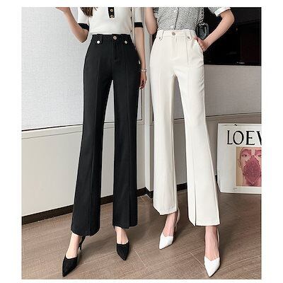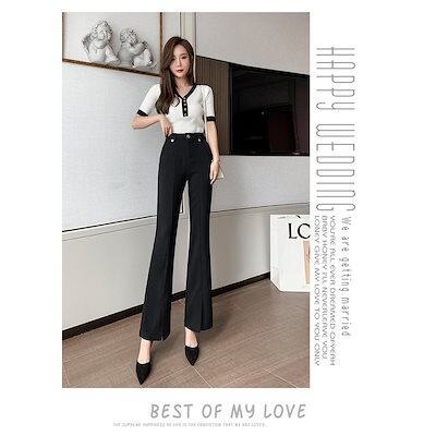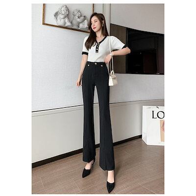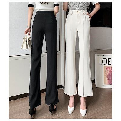 スラックスパンツ レディース 九分丈 通勤 黒スラックス ラッパズボン スリット ボトムス 大きいサ