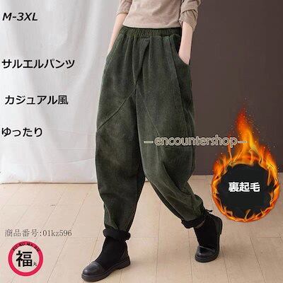 サルエルパンツ 無地 裏起毛 厚手 ゆったり ズボン ボトムス テーパードパンツ レディース 大きいサイズ 暖かい 無地 カジュアル 着痩せ 秋冬