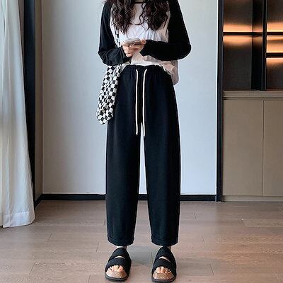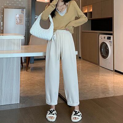 テーパードパンツ ロールエッジ レディース 秋の新作 ハイウエスト 薄手 ドローストリング プリーツ ハレンチパンツ 9分丈パンツ 韓国