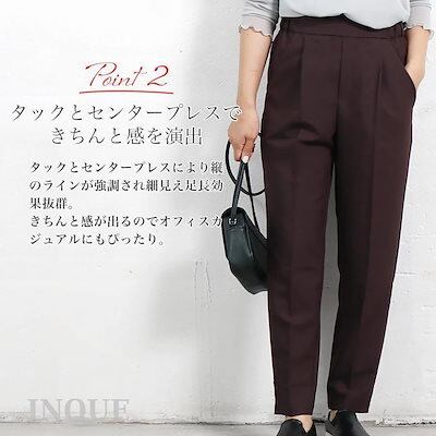 テーパードパンツ レディース スラックス ウエストゴム センタープレス パンツ ハイウエスト フォーマル オフィス カジュアル きれい目