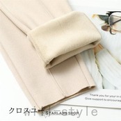 パンツレディーステーパードパンツウエストゴム裏起毛無地秋冬春体型カバー