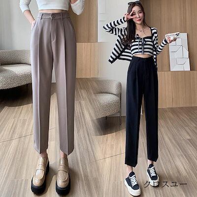 テーパードパンツ レディース ボトムス スラックス ビジネス ハイウエスト カジュアル 無地 ストレート 結婚式 卒業式 母の日 プレゼント 上品