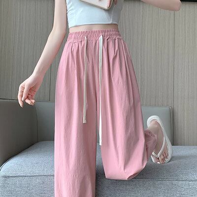接触冷感ボトムス スラックスパンツ アイスシルク速乾ハーレムパンツレディース2024夏新作ルーズスリムランタンカジュアルレッグパンツ 韓国ファッション