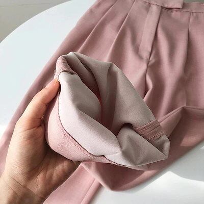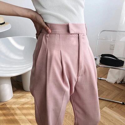 レディースモップパンツ黑白薄手ロング丈ズボン皺防止肌にやさしい美腿合わせやすい人気スラックススーツ接触冷感ボトムス