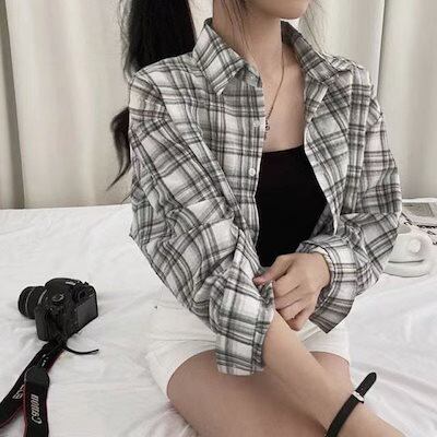 ロンT韓国ファッションシアーシャツ 2024 秋 新作 チェック 長袖 ストライプ トップス レディース シアーシャツ シャツ ノーカラーブラウス 長袖 ポケット Vネック 袖ゴム 襟なし 大人可愛い