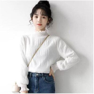 新規出店特典 トップス ブラウス ハイネック 春 長袖 女性用 レース 花柄 レディース 総レース キュート 立ち襟 レディース 韓国