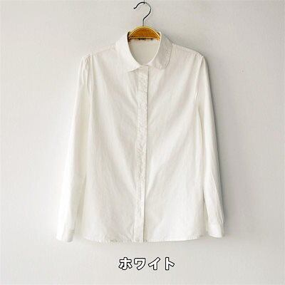 新規出店特典 シャツ ブラウス レディース 無地 長袖 春秋 ホワイト 着痩せ カジュアル コットン 綿 コーデ シンプル 折り襟 ボタン留め wcs-749