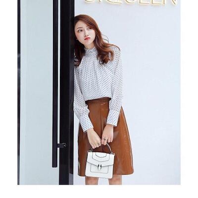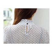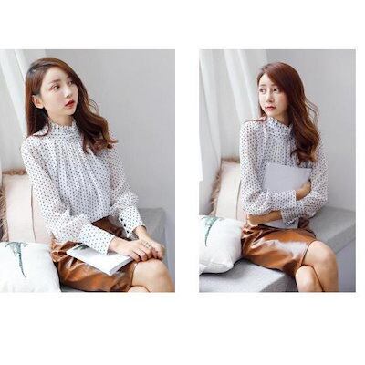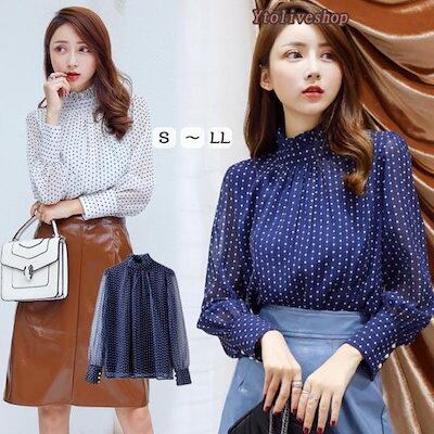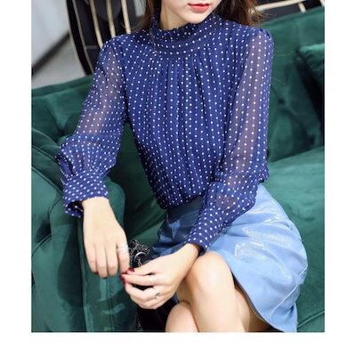 ブラウス レディース トップス シャツ シフォン 長袖 フリル襟 レトロ ドットフリルスタンドカラーブラウスおすすめ商品