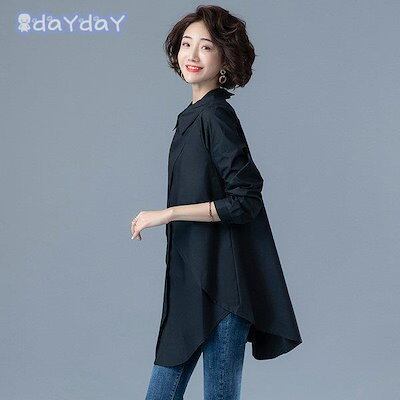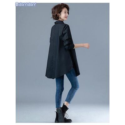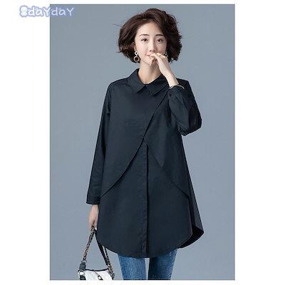 シャツ レディース 春 ロングシャツ 長袖 折り襟 チュニック aライン 切り替え 無地 ゆったり 体型カバー 春シャツ カジュアル 上品 大人 通勤 OL 30代 40代