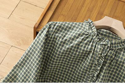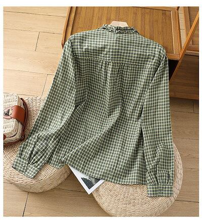 ブラウス レディース シャツ 長袖 ギンガムチェック 襟フリル シャツブラウス トップス ブラウスチュニック チェック柄 キレイめ カジュアル 森ガール シンプル 春 秋 大人可愛い 大きいサイズ ゆ