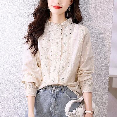 韓国ファッション 2024春秋の新作レースレース襟刺?シャツトップス 今っぽシアーシャツ 長袖 ブラウス レディース オフィス シャツ カーディガン