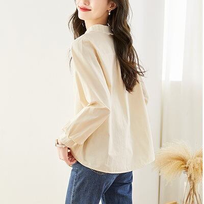レースレース襟シャツ2024春服コットンシャツ 韓国ファッション 今っぽシアーシャツ 長袖 ブラウス レディース オフィス シャツ カーディガン