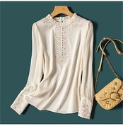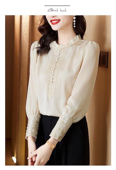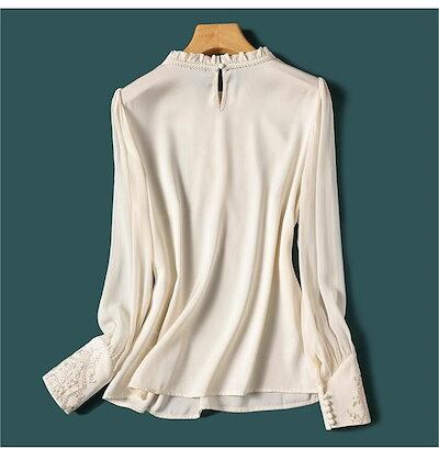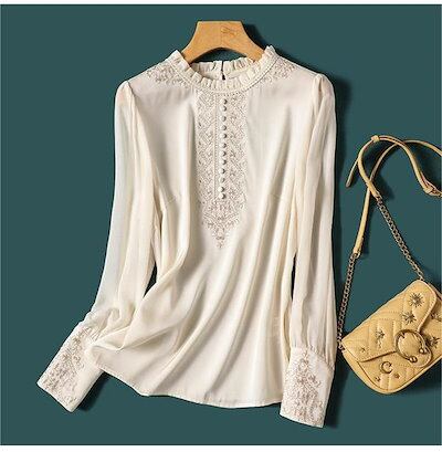 フリル襟ブラウス 光沢感 レディース 長袖 刺?ブラウス シフォン 花柄刺? 華やか トップス スーツインナー フリル襟 通勤 オフィス 仕事 OL おしゃれ 大人可愛い ゆったり カジュアル フォー