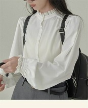 ブラウス レディース 長袖 シャツ スーツ インナー 白シャツ スタンドカラー 襟レース トップス フォーマル 無地 オフィス ビジネス 立ち襟 春秋 お洒落 通勤 カジュアル OL おしゃれ シンプ