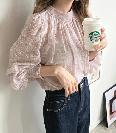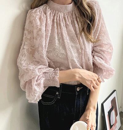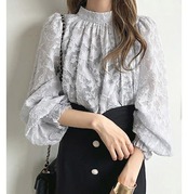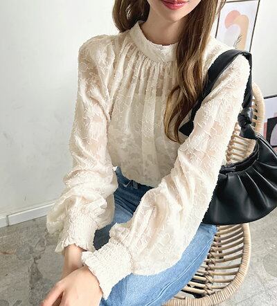 透かしレース レースシャツ 長袖 レディース 春夏 カットソー レース 刺繍 上品 薄手 透け感 高襟 立ち襟 パーティー 結婚式 ビジネス 通勤 ブラウス レースブラウス きれいめ 華奢見せ 大人
