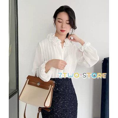 フリルブラウス ブラウス レディース 長袖 トップス 春 秋 シアートップス シャツブラウス シアーシャツ フリル襟 通勤服 オフィス 白 黒 スーツ インナー