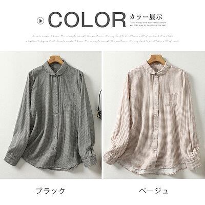 シャツ レディース 長袖 チェック柄シャツ トップス コットン 丸襟 折り襟 ストライプ 長袖シャツ ブラウス 2重ガーゼ 羽織り 開襟 アウター ポケット 冷房対策 上品 ガーゼシャツ ギンガムチェ
