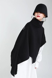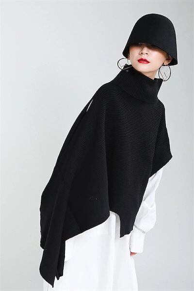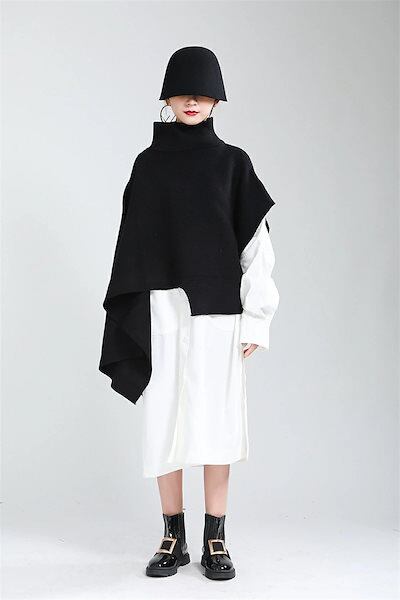 ポンチョ レディース 秋冬 ニット コート ケープ ニット 肩掛け セーター トップス ニットトップス タートルネック ハイネック 不規則 ロング丈 大判 ロング 無地 ゆったり ニットソー 大判スト