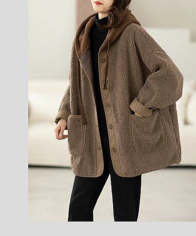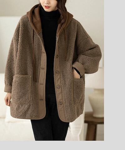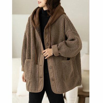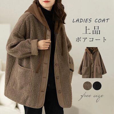 ボアコート ジャケット レディース ロング 秋冬 長め ボア アウター フード付き 異素材 切替 トップス ブルゾン 防寒 厚手 暖か ゆったり カジュアル 大人可愛い ボアジャケット きれいめ オシ