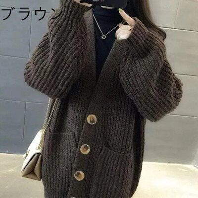 オフィス 冬 無地 ゆったり ニット アウター レディース 黒 カジュアル ポケット付き カットソー トップス 長袖 厚手 秋 春 大きいサイズ カーディガン