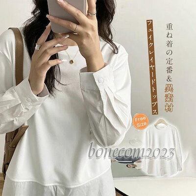 重ね着 シャツ 春 通勤 チュニック 秋冬 トップス 長袖シャツ 切り替え レディース レイヤード 着回し 長袖 シャツ 異素材 プルオーバー ブラウス シンプル