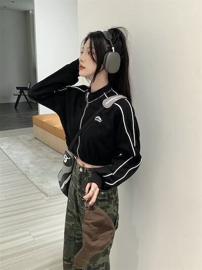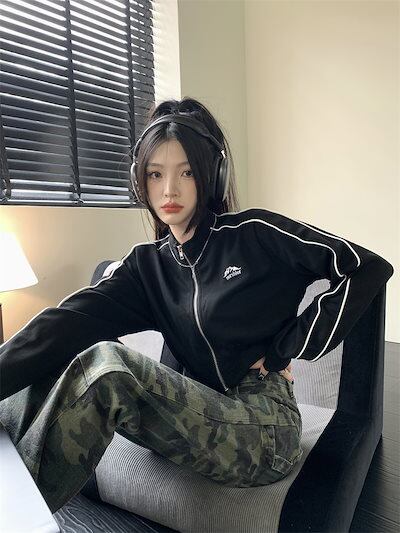 2024 秋 韓国 かわいい レディース アウター ブルゾン お出かけ ブラック ライトカーキ アウター長袖セクシートップスサイド冬カジュアルファッション系お出かけフル丈トラック