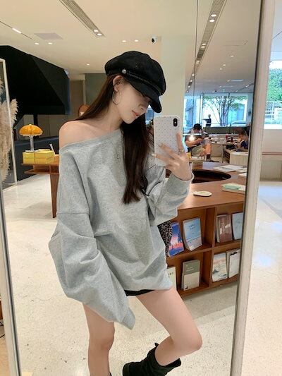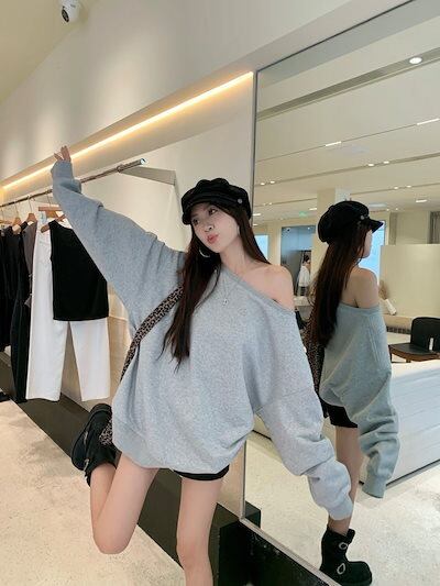 2024秋冬トップス 長袖 肌見せ 無地 ゆったり 細見え 秋冬 黒 おしゃれ かわいい 韓国系ファッション レディース お出かけ