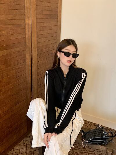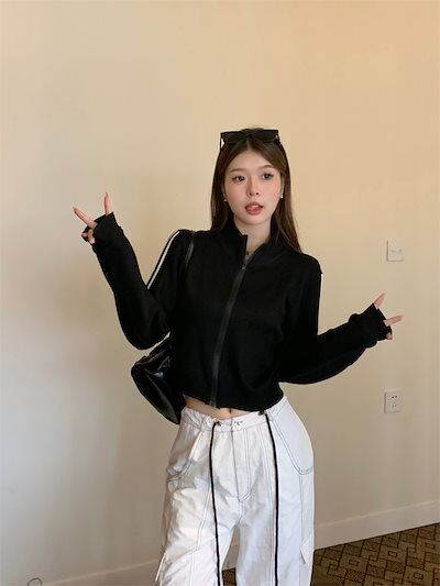 2024 秋 韓国 かわいい ニットネック レディース アウター ブルゾン お出かけ ブラック ライトカーキ アウター長袖セクシートップスサイド冬カジュアルファッション系お出かけフル丈トラック