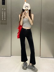 2024春夏パンツ デニム ジーンズ クロップド丈 アンクル丈 ワイドレッグ ハイウエスト 美脚効果 脚長効果 細見え 夏 黒 おしゃれ かわいい 韓国ファッション レディース お出かけ