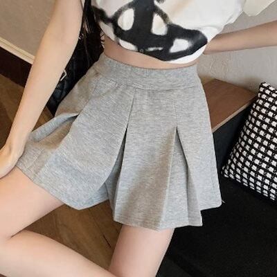 2024 春夏パンツ キュロット ショート丈 Aライン プリーツ ウエストゴム ハイウエスト 美脚効果 脚長効果 細見え 夏 おしゃれ かわいい 韓国ファッション レディース お出かけ