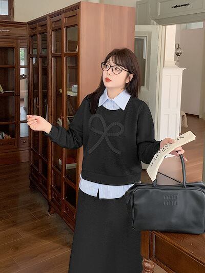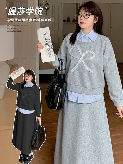 【ぽちゃまに】 2024秋新品 スウェットセット 大きいサイズ 体型カバー 上下セット レディース 学院風 スカート ジャージ セットアップ メガ割