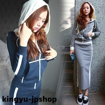 【2024秋新入荷】セットアップ レディース 春秋 スウェットセット スポーツウェア 上下セット ロング丈タイトスカート パーカー 運動着部屋着 運動会 ジャージ ルームウェア