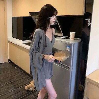 響かない!シームレス韓国ファッション カップ付きインナーパジャマ ルームウェア 上下セット 三点セットレディース 部屋着 寝間着