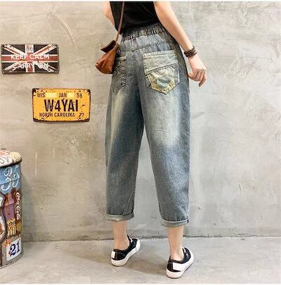 デニムパンツ コクーンパンツ レディース 9分丈 ジーパン ゆったり ワイドパンツ 刺? 美脚 柔らか バギー ボトムス チノパン 大きいサイズ 春秋 カジュアル ウエストゴム 体型カバー ナチュラル