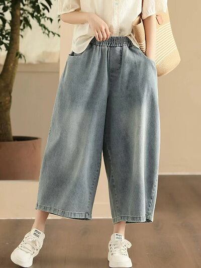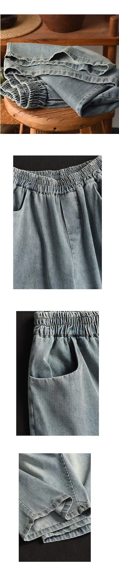 デニムパンツ レディース 7分丈 ワイド ワイドパンツ ワイド 大きいサイズ ゆったり 薄手 きれいめ ボトムス ウエストゴム 無地 柔らかい オフィス 美脚 通勤 可愛い 通勤 OL 体型カバー カ