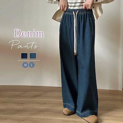 ワイドパンツ デニムパンツ レディース 春秋 パンツ デニム ジーンズ ジーパン ボトムス ゆる リラックスパンツ ゆったり 体型カバー ハイウエスト 大人 ウエストゴム 柔らか 着?せ 美脚 おし