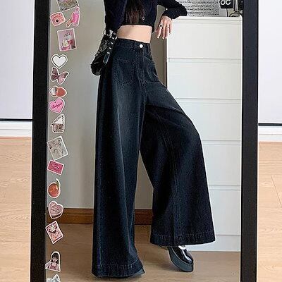 ワイドパンツ レディース デニムパンツ フレアパンツ ジーンズ ジーパン ロングパンツ 大きいサイズ ゆったり ハイウエスト バギーパンツ ボトムス ロング丈 ズボン カジュアル 大きいサイズ 美脚