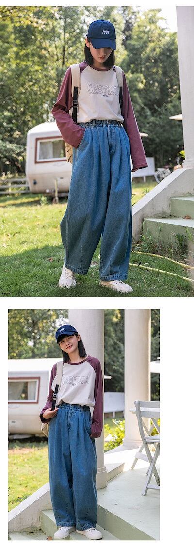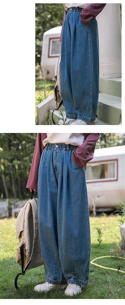 デニムパンツ レディース 秋 パンツ 綿 ワイドパンツ デニム ジーンズ ジーパン ボトムス ゆる リラックスパンツ ゆったり 体型カバー 大人 かわいい ウエストゴム 柔らか 着?せ 美脚 おしゃ