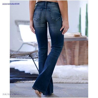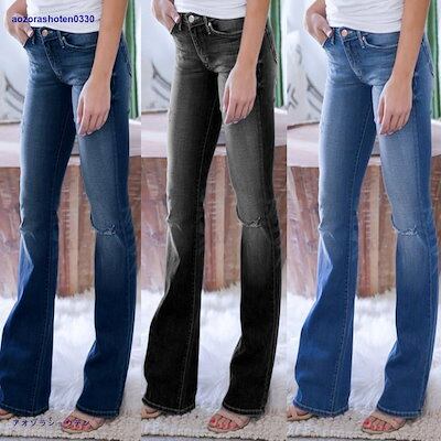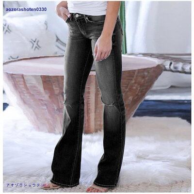 パンツ デニム ジーンズ フレアパンツロングパンツ ひざダメージ 破れ風ダメージデニムパンツ レディース ブーツカット