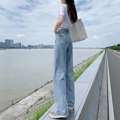 デニムパンツ ボトムス ズボン ワイドパンツ デニムパンツ レディース ズボン ハイウエストパンツ フレアパンツ ウエストゴムパンツ
