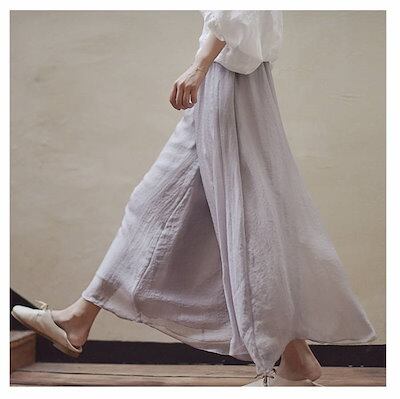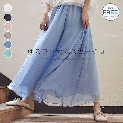 ワイドパンツ レディース 綿麻 リネン スカンツ ガウチョパンツ ロング丈 体型カバー おしゃれ ゆったり ナチュラルカジュアル 着痩せ ボトムス ゆる 大きいサイズ 薄手 ワイドシルエット フレア
