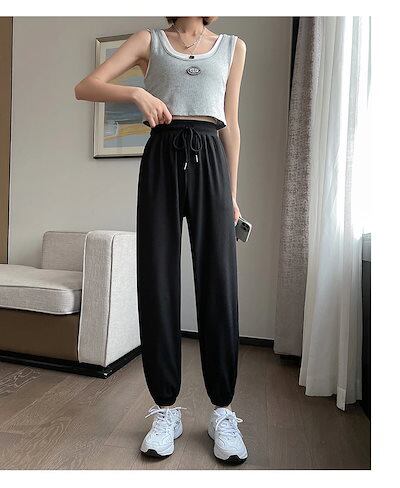ジョガーパンツ 夏レディースハイウエスト ブルゾンカジュアルワイドパンツウエストゴムパンツフレアパンツワイドゆったりした パンツ