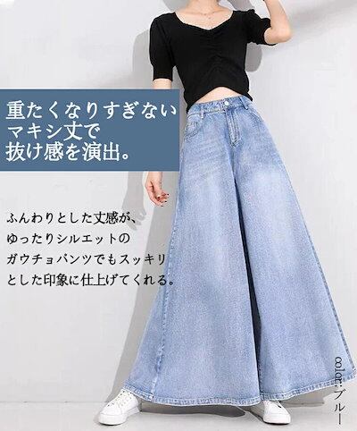 ワイドパンツレディースデニムガウチョパンツ大きいサイズゆったりきれいめデニムパンツワイドふんわりボリュームロングパンツ長ズボンカジュアルシルエットスカーチョ揺れる脚脚長効果着痩せフレアパンツマキシ丈き