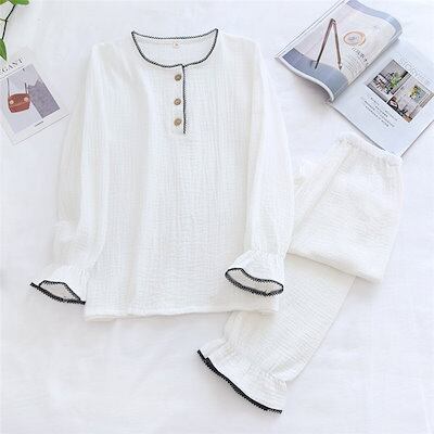 パジャマ レディース 綿100% ダブルガーゼ ルームウェア 部屋着 上下セット 2点セット 薄手 ナイトウェア 秋 セットアップ フレア長袖 ロングパンツ 女性 可愛い 着心地良い プレゼント ギ