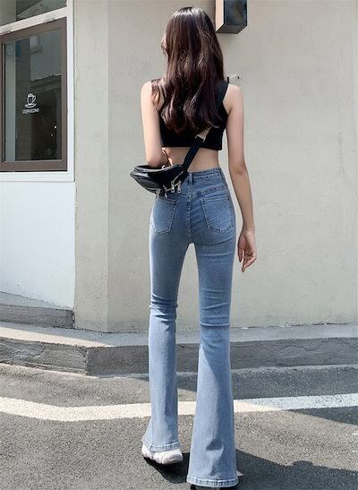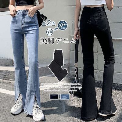 GNLEデニム パンツ レディース ボトムス デニムパンツ フレアパンツ ジーパン ジーンズ きれいめ ハイウェスト 美脚パンツ 長ズボン ロング丈 ポケット付き 大人 カジュアル オシャレ インナーパンツ