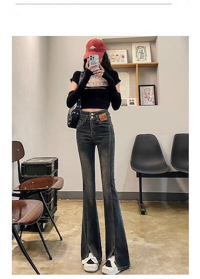 春 夏 スリット レディース ジーンズ新作ハイウエスト 着痩せ スリット フレアスズボン
