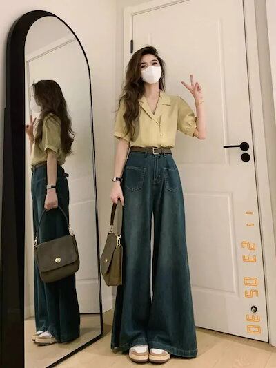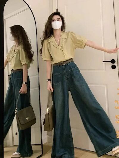 脚長効果!スキニーデニムパンツ デニムボトムス レディース フレアーパンツ ハイウエスト ワイドパンツ ストレート 美脚 美尻 カジュアル ジーンズ